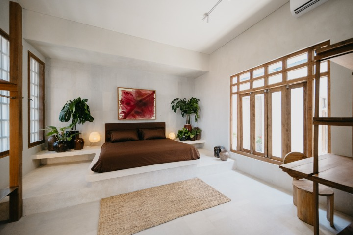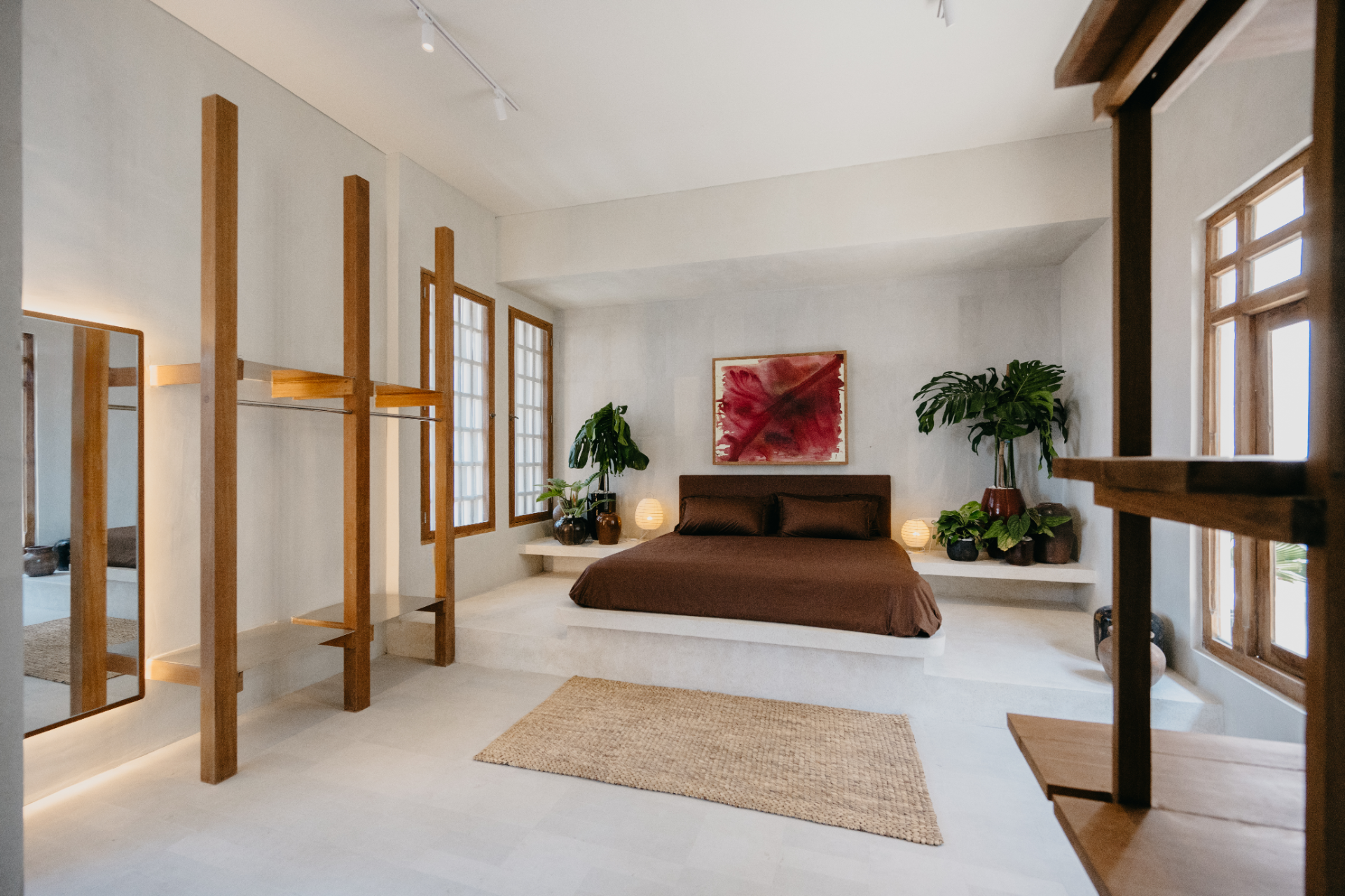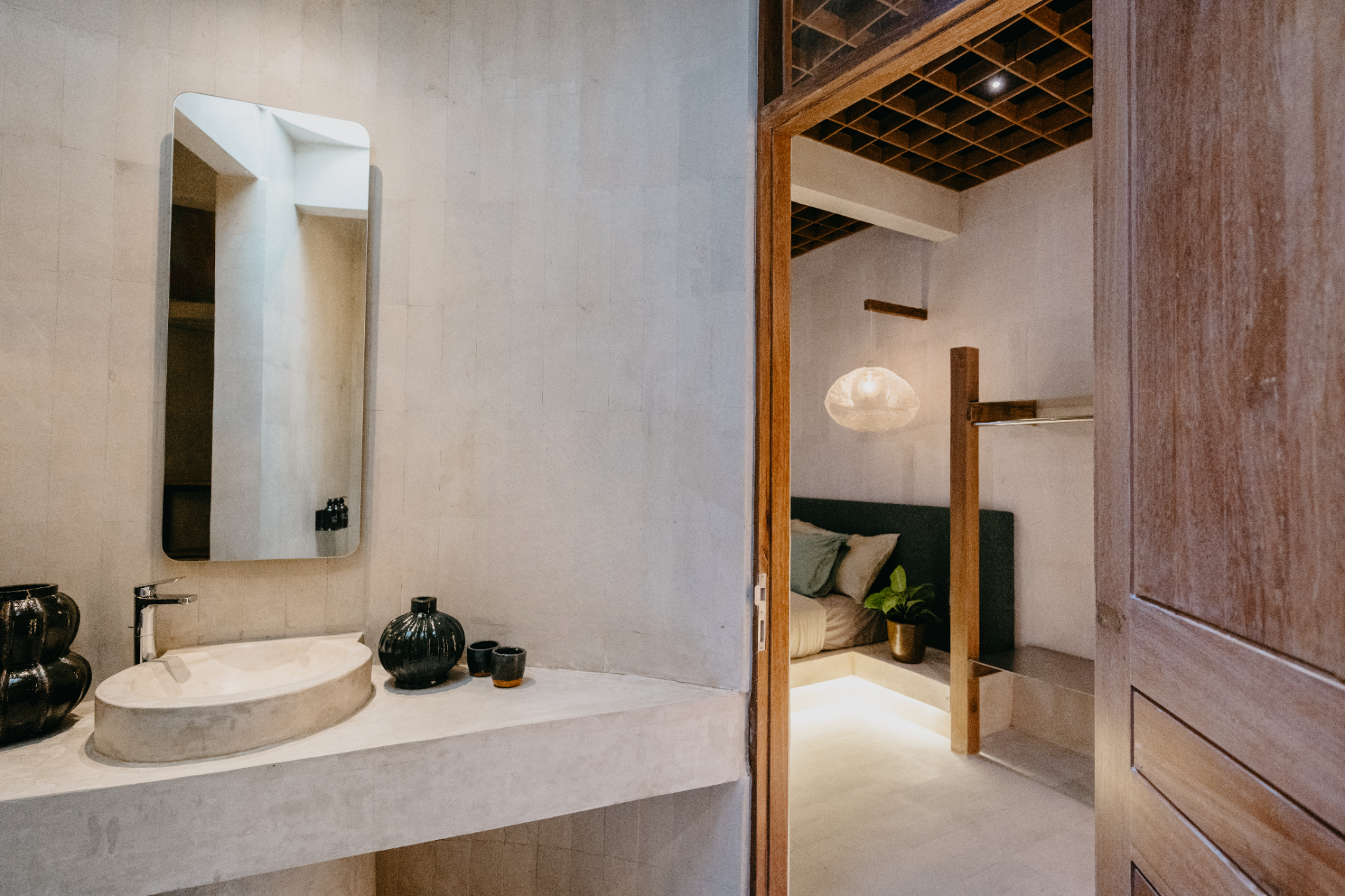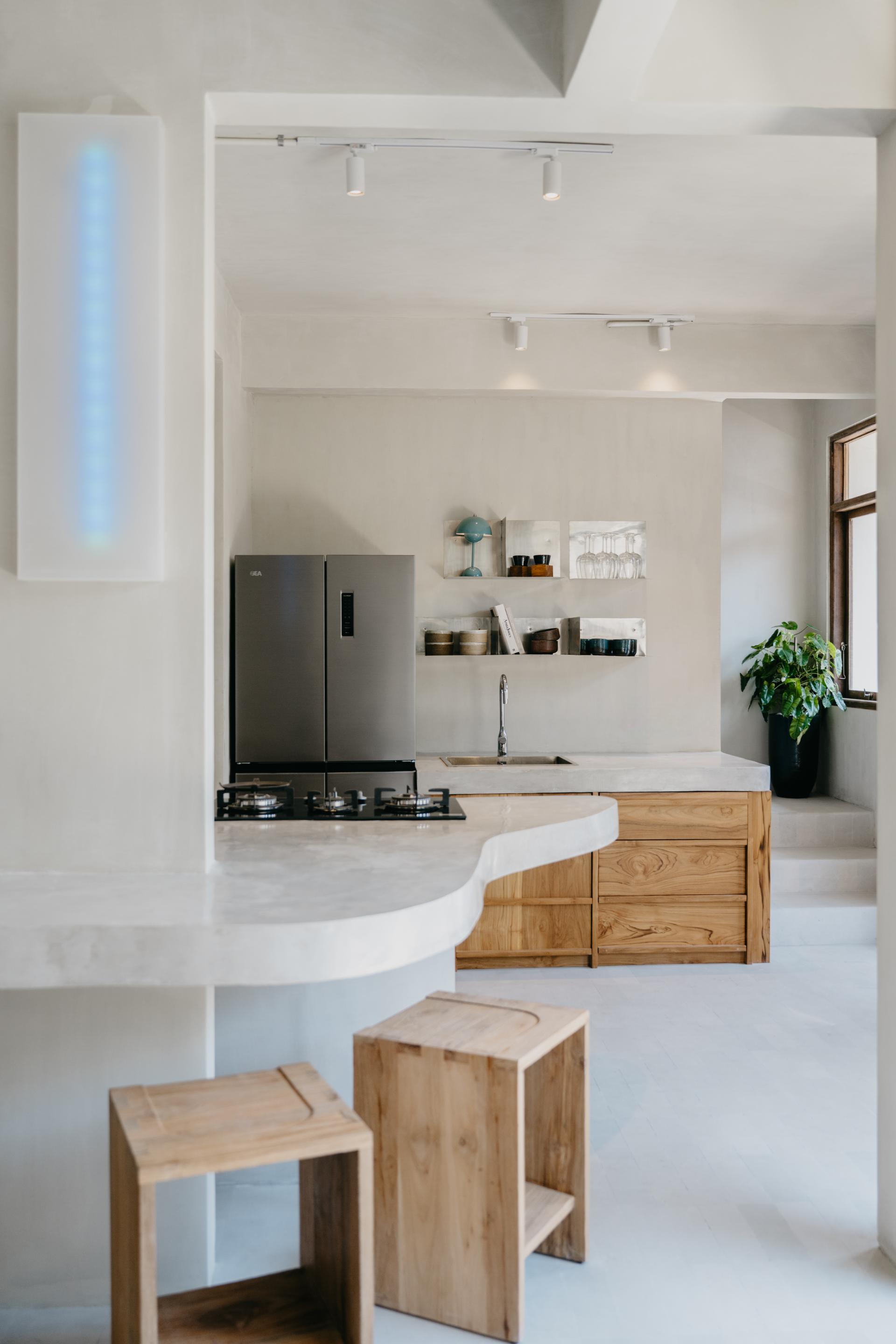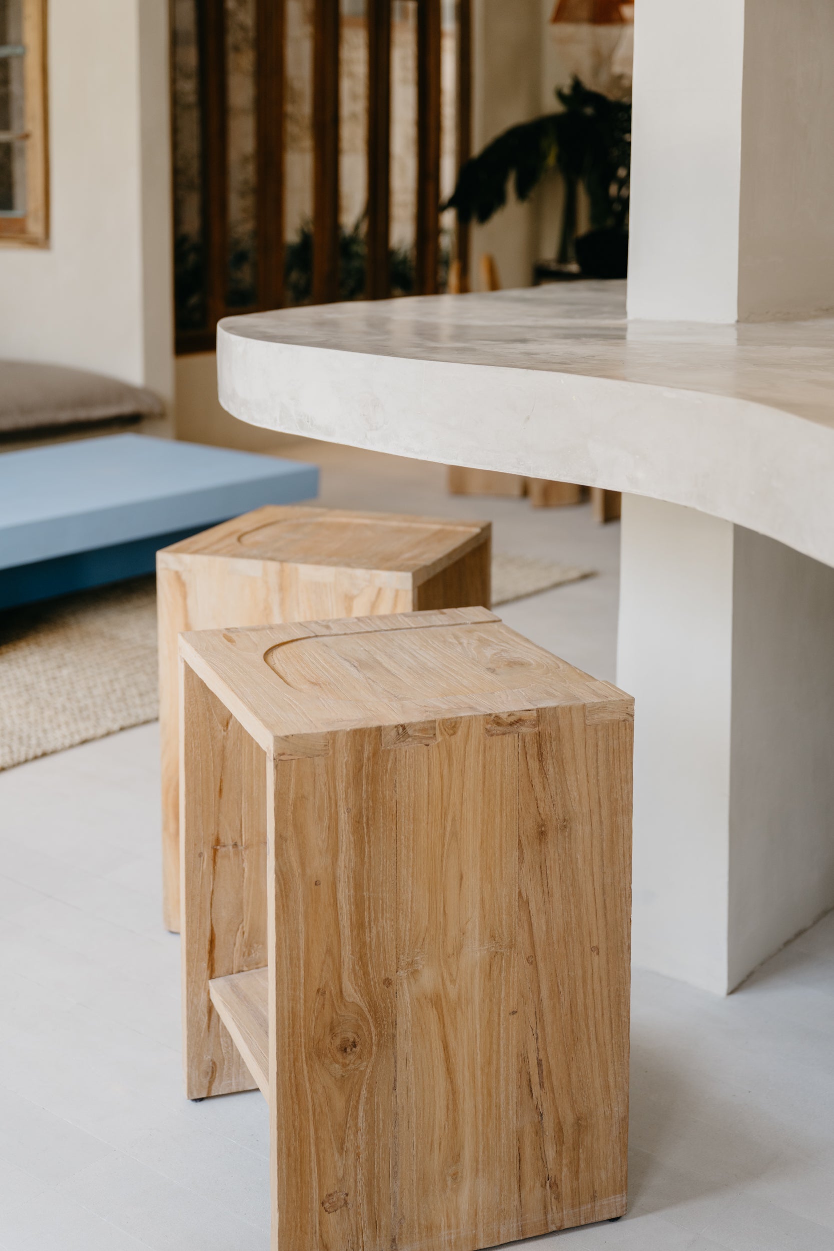 Recycled teak sets the tone — rich, warm, deeply textured — grounding the home with a subtle sense of memory. Its imperfections, patina, and grain are not hidden; they are celebrated, becoming a counterpoint to the cooler, more minimal elements in the space.