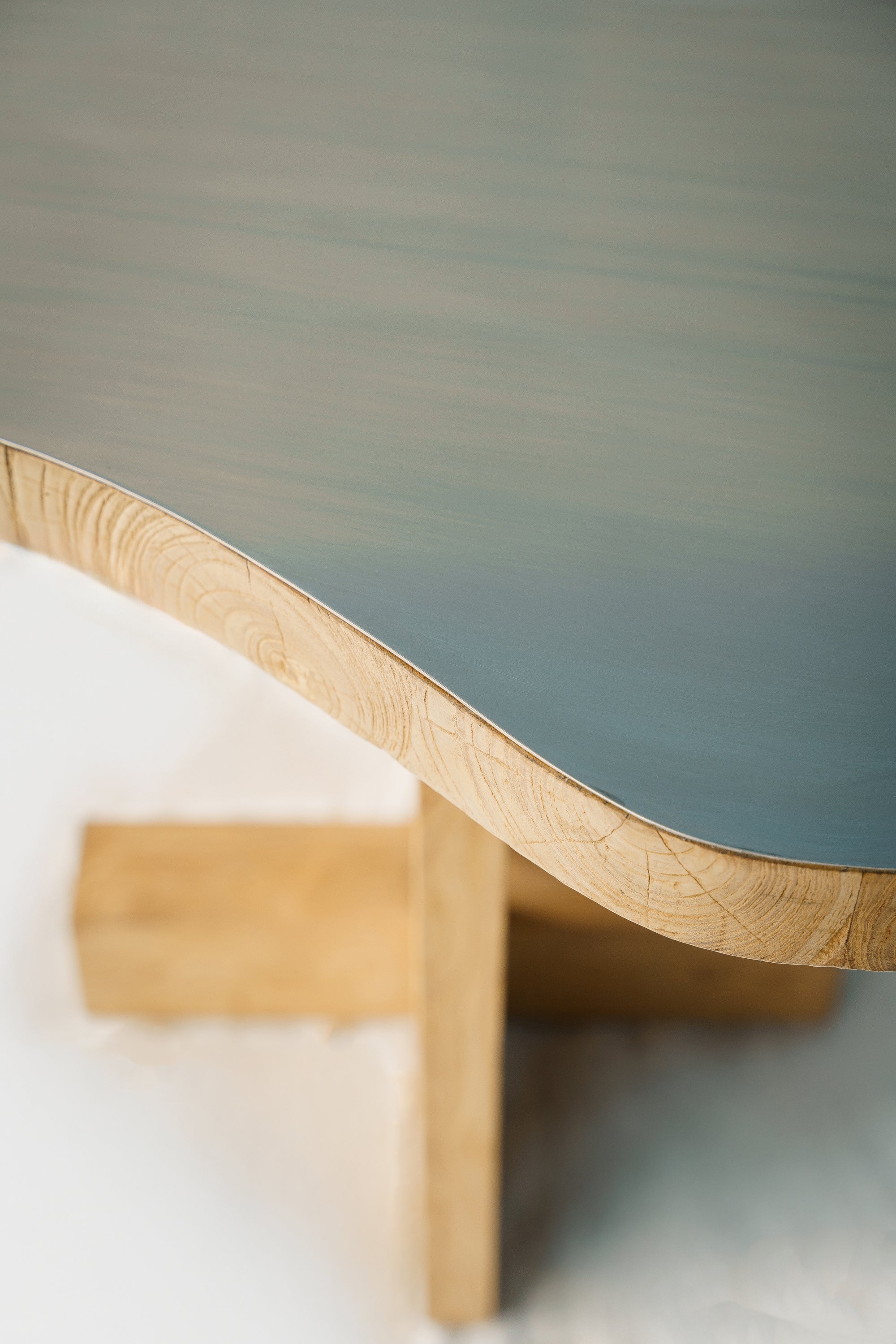 Table 22 embodies Japandi minimalism, blending heritage craftsmanship with a contemporary presence. Featuring a stainless steel tabletop atop a solid wood base, its design contrasts sleek refinement with natural warmth. The Japanese joinery details highlight precision and tradition, while the asymmetrical form reflects the organic flow of nature. Grounded yet fluid